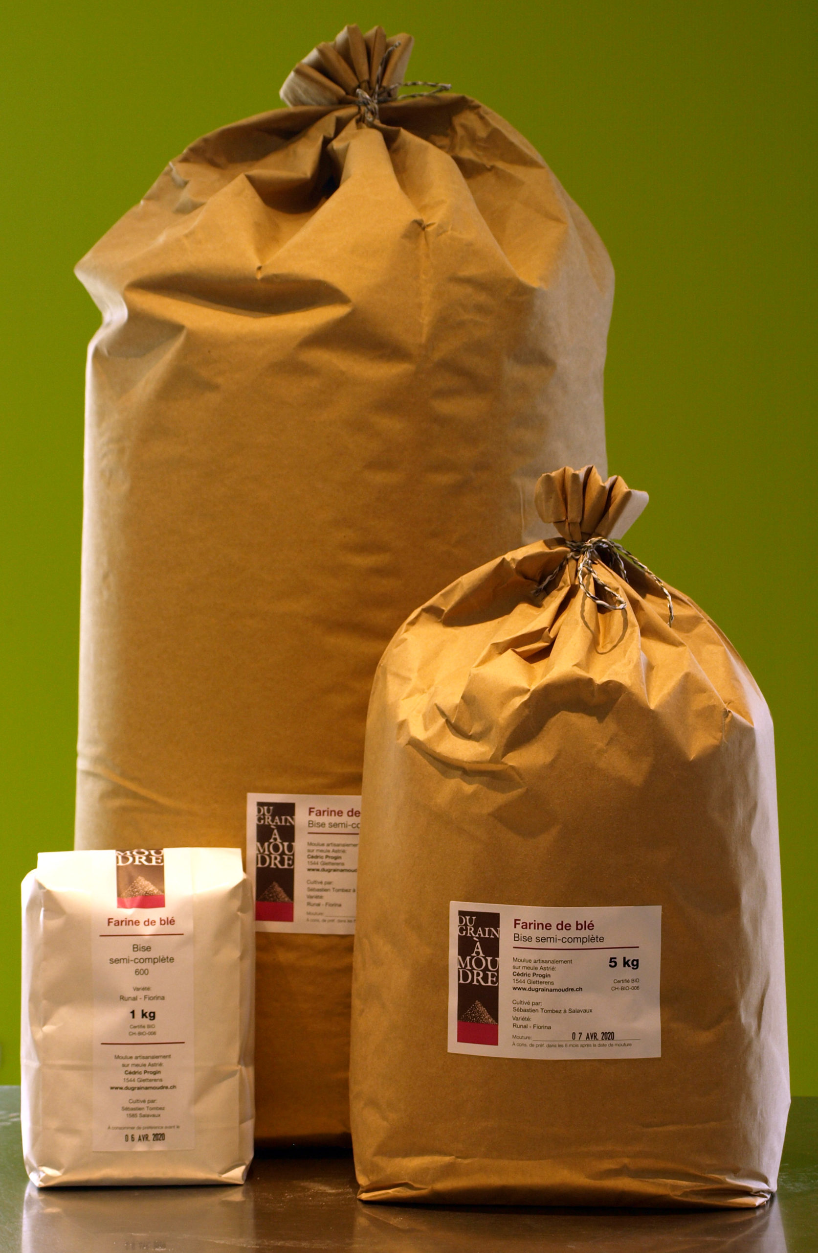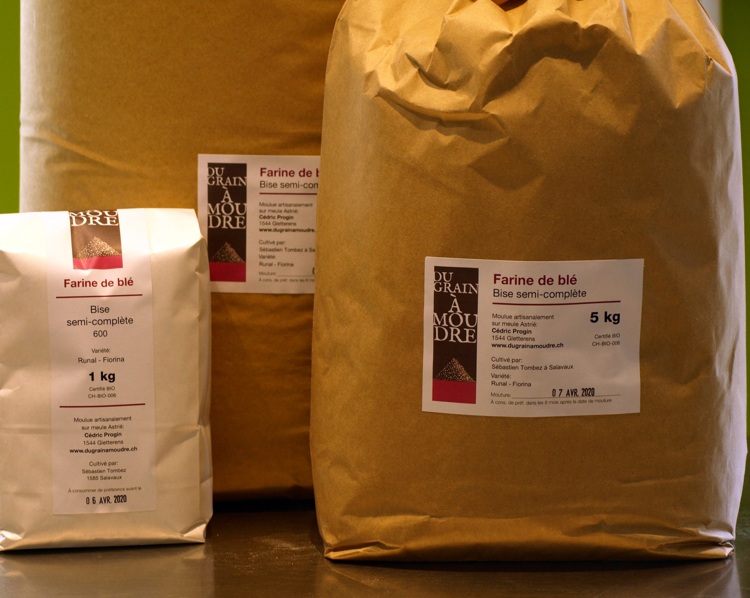 Notre farine de froment (assemblage de 5 blés tendres cultivés entre Salavaux et Missy) cultivés par Sébastien Tombez et Lucien Quillet, au bord du lac de Morat et de la petite Glâne, est tamisée à 600 microns. Elle comporte beaucoup de petit son, donc beaucoup de fibres et de minéraux, ce qui confère aux produits issus de cette farine un caractère rustique, gouteux et nourrissant. Sa texture fine permet d’obtenir des pâtes légères et savoureuses tout en bénéficiant des bienfaits nutritionnels du blé semi-complète.